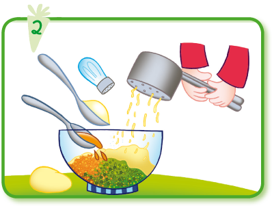Aggiungi le carote e i cetrioli tritati, 4 cucchiai di maionese, 2 cucchiai di aceto e un po' di sale, mescola bene tutto quanto